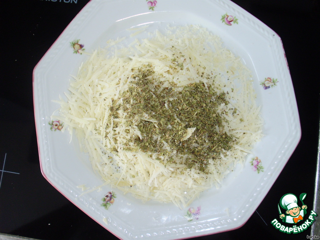Натереть пармезан и смешать с итальянскими специями