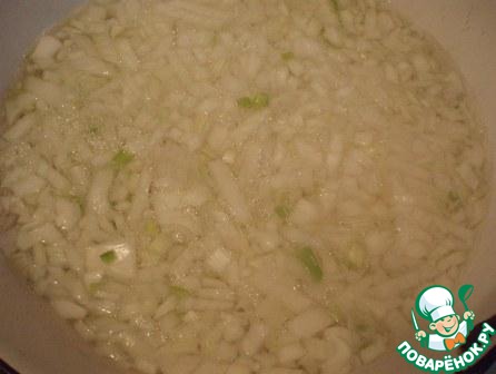 Лук порезать самым мелким кубиком.