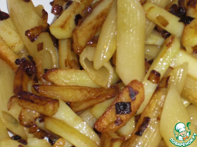 | Думаю, что у большинства из нас бывают ситуации, когда после вчерашнего осталось немного оварных макаронов - семью этим количеством не накормишь, а выбросить жалко... Я предлагаю поджарить эти макароны с картошкой и луком! Таким нестандартным блюдом лет 25 назад меня угостила приятельница и это оказалось замечательно вкусно! На "Поваренке" я такого рецепта не нашла, да и знакомые мои, которым я рассказывала о такой вкуснятине никогда не слышали о таком рецепте, поэтому рискну предложить его вам! Я сама была удивлена таким набором продуктов, но попробовав, поняла, что по вкусу это практически то же, что обжаренные вареники с картошкой, только проще в приготовлении! Попробуйте! |