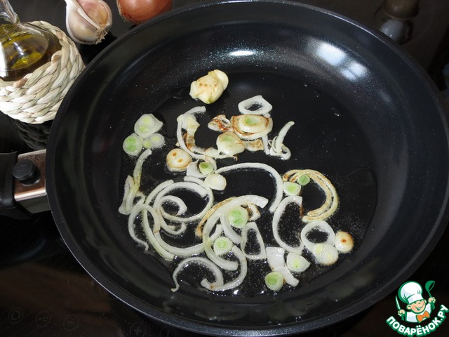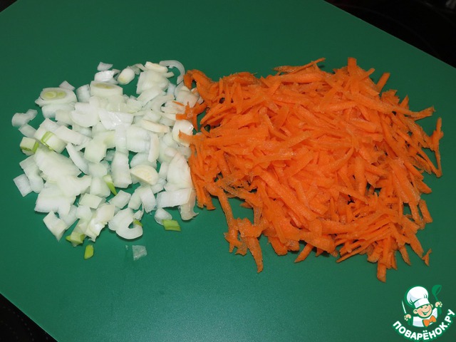 Оставшийся лук нашинковать, обжарить на растительном масле.