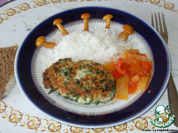Смесь выкладывать мокрой ложкой в сковороду с растительным маслом, придавая вид котлет. Обжарить с двух сторон на небольшом огне до подрумянивания. Подавать с картофелем или рисом. Я подала с рисом и домашним лечо.