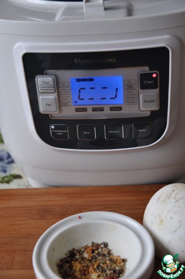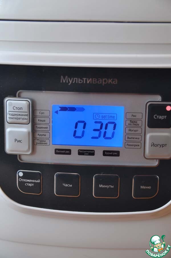 Мультиварку включаем на режим "Поджаривание", заливаем в чашу растительное масло.