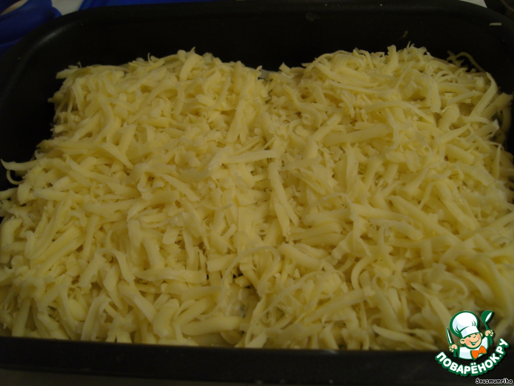 Посыпаем сверху тертым сыром. И отправляем в духовку.