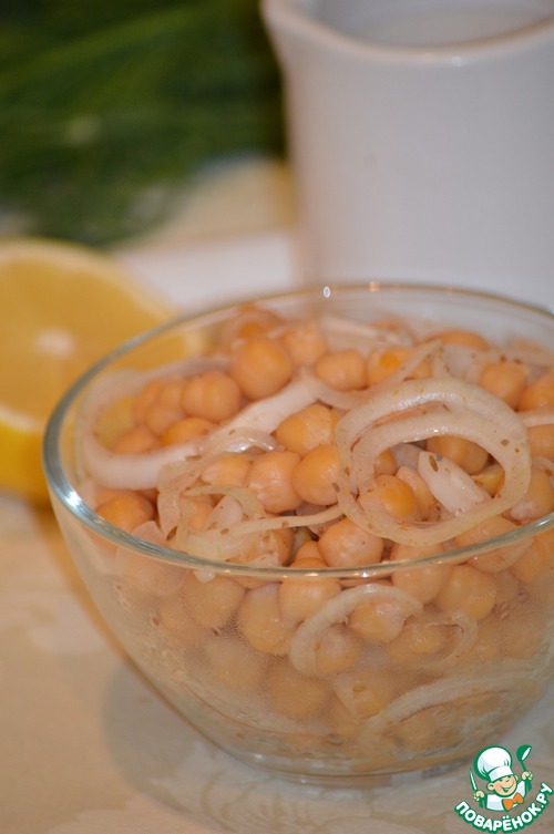 С готового нута слить воду, всыпать соль и специи. Перемешать.