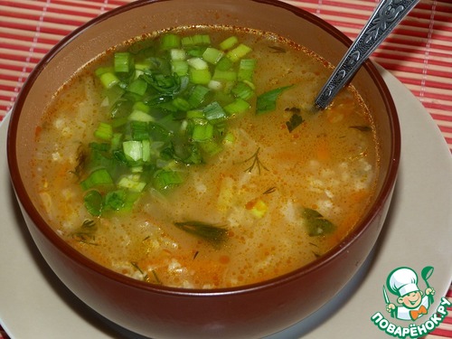 Готовый суп при подаче посыпать зеленым луком (впрочем, это уже по желанию).