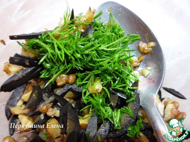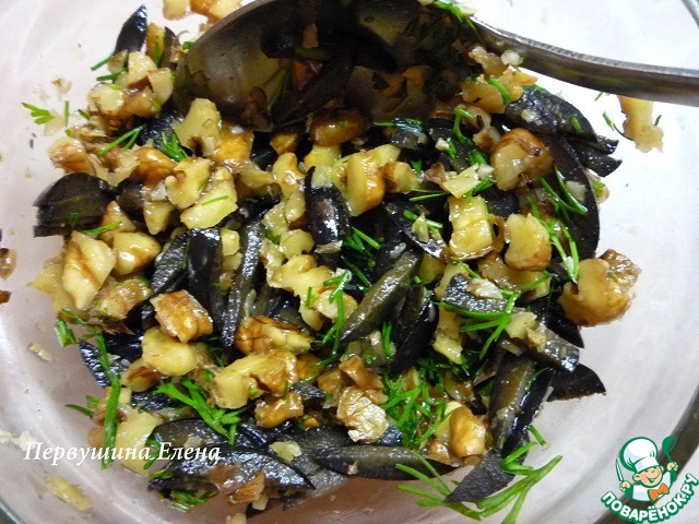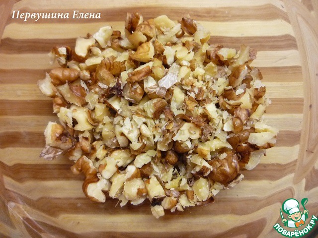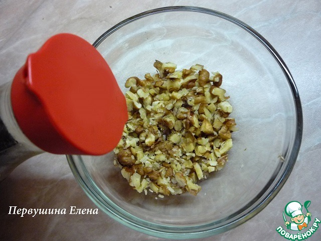 Пока вермишель настаиваться, сделаем заправку: в орехи нальем соевый соус, перемешаем и оставим впитываться.