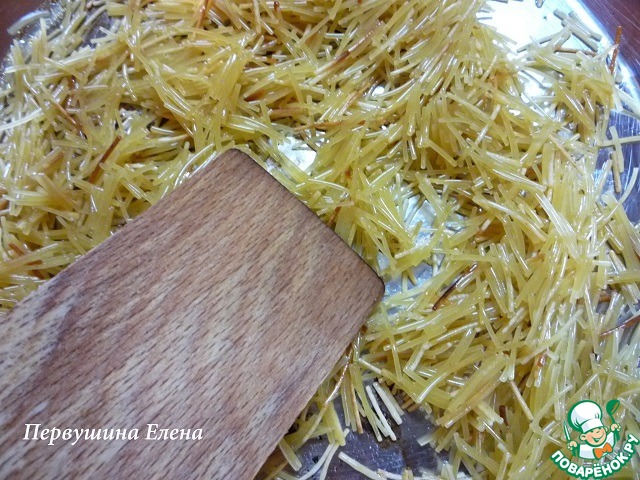 на режиме "Мультиповар" при 160С обжарить вермишель в течении 20 минут.