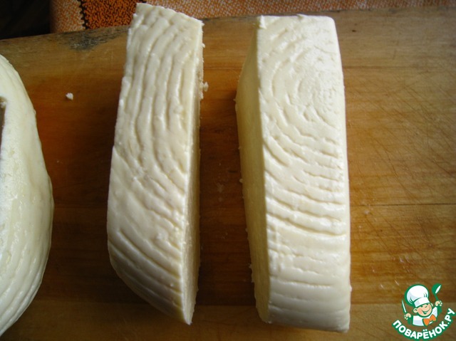 Я отрезала 2 куска сыра приблизительно по 150г,