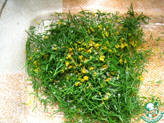 Смешиваем на тарелке измельченный укроп и тархун, цедру лимона и сахар.