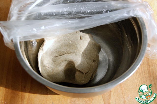 Тесто с миской накрыть плёнкой или пакетом и оставить отдыхать на 30 мин. при комнатной температуре.
