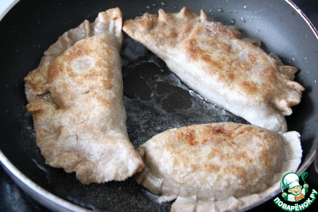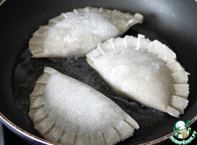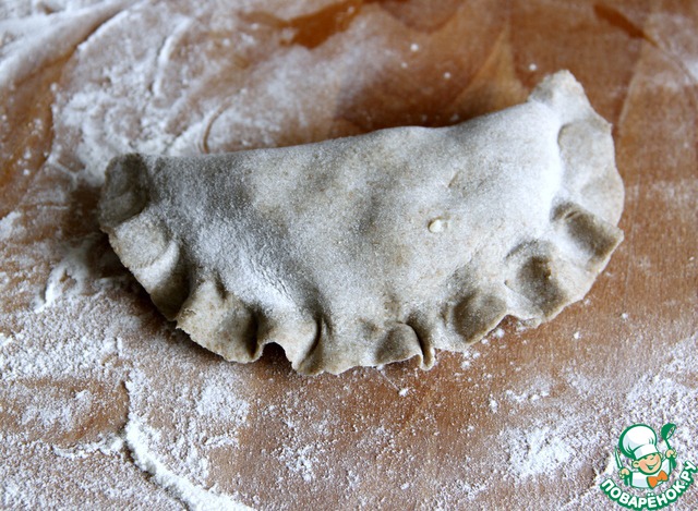 Можно формовать без присобления, раскатав тонкий круг, выложив начинку, смазав водой и сделав немного волнистыми края...