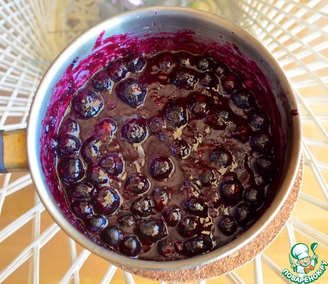 3. Должно получиться довольно густое варенье. Когда варенье готово, всыпать второй стакан черники и готовить еще 2 минуты, помешивая. Остудить до комнатной температуры.