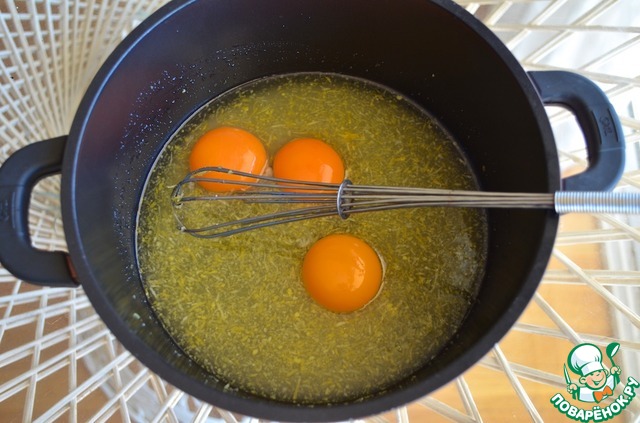 4. Приготовить лимонный соус. Смешать сахар, лимонный сок и цедру с водой. Добавить желтки и хорошенько размешать.