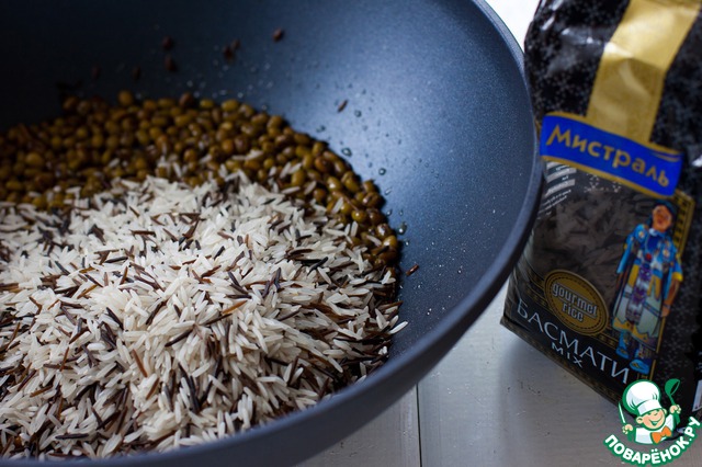 Через 20 минут всыпать рис и, если необходимо, долить еще воды, чтобы она покрывала рис на палец.