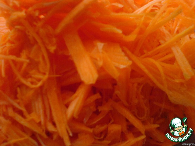 Mорковь нарезать соломкой или натереть на крупной терке.