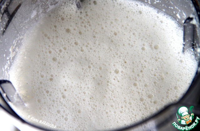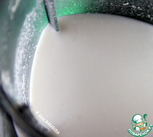 Предварительно нам необходимо приготовить кунжутное молоко. Для этого нам нужно 11 ст. л. кунжута, вода 500 мл, щепотка ванили. Замачиваем на ночь кунжут в 250 мл воды, затем взбиваем в блендере. Добавляем оставшиеся 250 мл воды, ваниль и хорошо взбиваем в блендере. Процеживать ничего не нужно- будем использовать молоко со жмыхом.