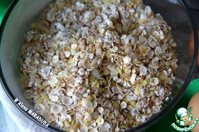 Итак, преступаем к приготовлению нашего чудо- завтрака. Подготавливаем основу. Берем 4 небольших миски. Замачиваем 1/2 стакана злаков в 1/2 стакана кунжутного молока. Добавляем по 1 ст. л. ложке рафинированного растительного масла. Оставляем на 10 минут.