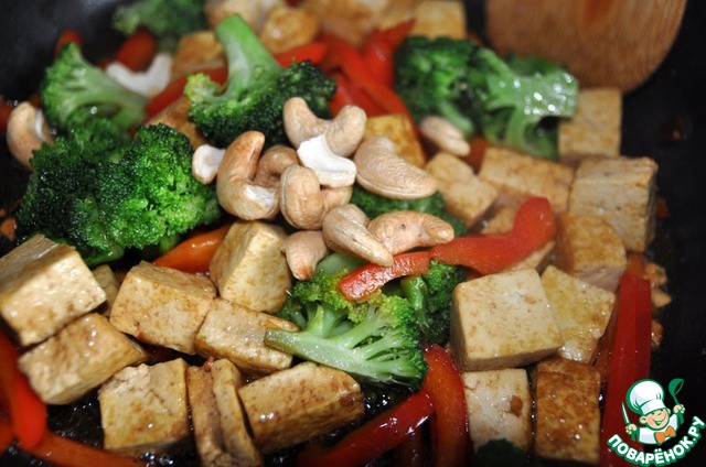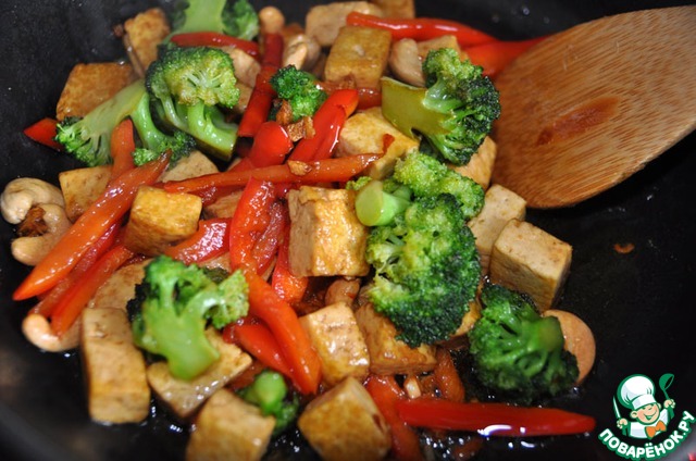 | Двадцать лет назад у нас на Дальнем Востоке был в прямом смысле "бум" на приготовление блюд из тофу. Соя у нас растёт повсеместно, как виноград в Италии или рис в Китае. Но как-то со временем этот ажиотаж угас. И вот недавно я нашла интересный рецепт вегетарианского стир-фрай от Эктора Хименес-Браво - знаменитого шеф-повара, обладателя звания World Mast. Повторила это рецепт в подробностях до мелочей и осталась очень довольна. В Пост такое блюдо - полноценный обед или ужин, можно есть как самостоятельное блюдо, можно с рисом. |