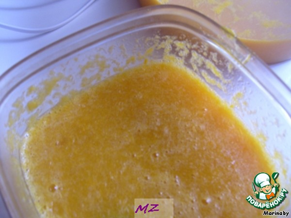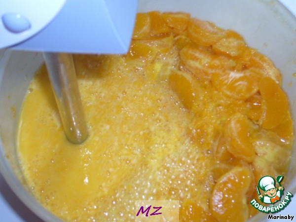 У меня были свежие клементины (мандарины) - 2 кг, и из них я решила приготовить этот десерт. Почистить фрукты и разобрать на дольки, добавить стакан сахара и немного подогреть. Я эту смесь оставила на ночь для пропитки, так как клементины были кисловаты.