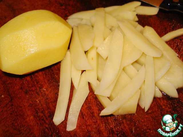 Еще две картофелины я просто режу соломкой, они будут добавляться в начинку для голубцов сырыми.