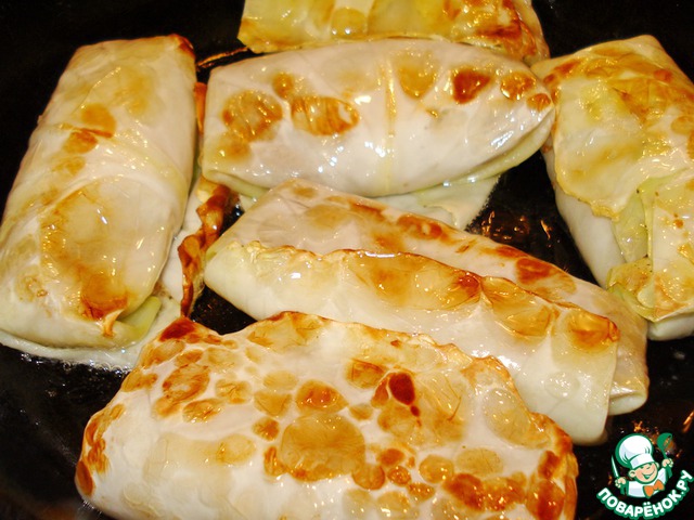 Голубцы я всегда сначала обжариваю в растительном масле с двух сторон. (сначала на сковородку кладите швом вниз)