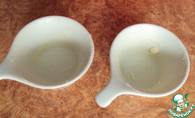 Формочки смазать маслом и присыпать мукой.