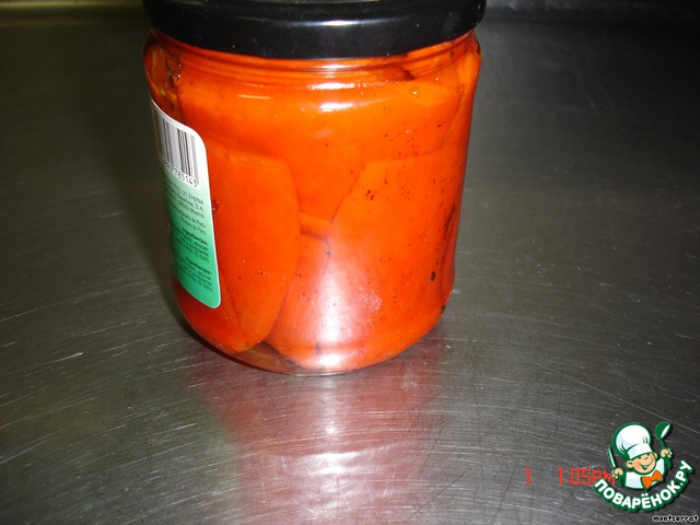 Перчики имеют сладковатый вкус и уже готовы к употреблению, их можно использовать как гарнир, как овощную закуску, в холодном и горячем виде. Так как внутри они пустые, можно фаршировать любыми продуктами: креветками, рыбой. Перчики вынимаем из банки, сцеживаем сок, его используем для соуса.