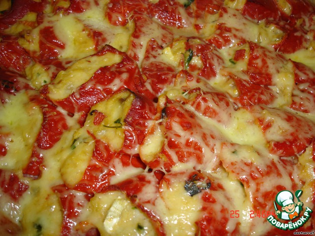 Готовим фарш: лук мелко нарезаем, обжариваем, добавляем консервированный тунец, прогреваем, добавляем густой соус бешамель, специи, фаршируем перчики и укладываем в лоток для запекания. Вливаем сок от перчиков, можно немного вина, посыпаем тертым сыром и запекаем в духовке до расплавления сыра.