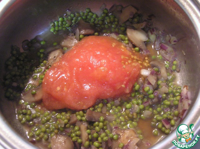 Помидоры очистить и протереть на терке, добавить к машу и тушить до готовности маша. Если необходимо, то добавлять воды.