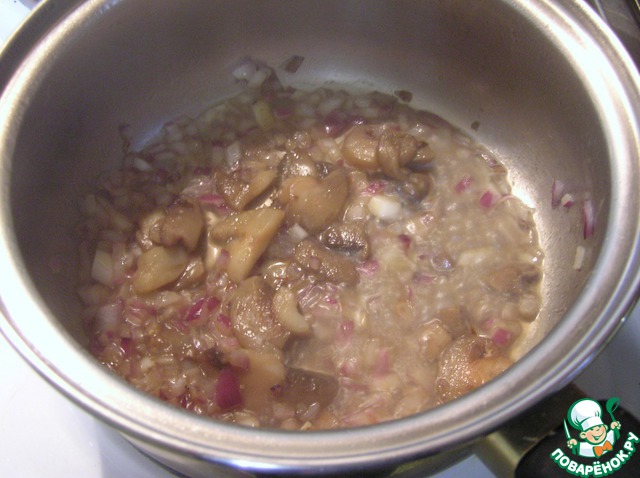 Репчатый лук нарезать кубиками и потушить на растительном масле до прозрачности, не зажаривать