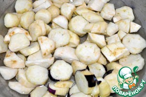 Это овощи из которых и готовится блюдо. Пропорции можно менять по собственному вкусу. Баклажаны у меня были совсем малюсенькие, поэтому 4 штуки.