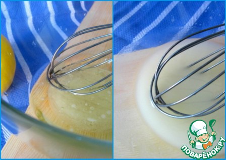 В миске смешать 6 ст. л. оливкового масла с 2 ст. л. лимонного сока и 1/2 ч. л. соли.
