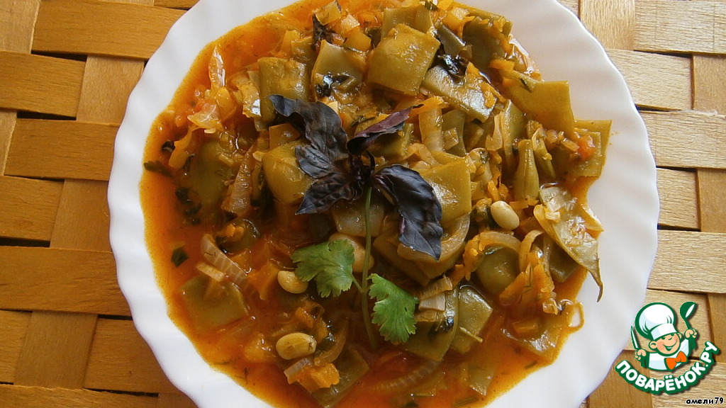 Фасоль моем и ломаем руками или режем ее так, чтобы каждая фасолинка оказалась в своем "домике".