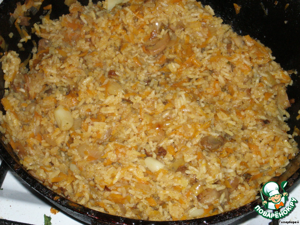 | Весьма диетический плов с грибами. Жена, ее подруги и теща в восторге. |