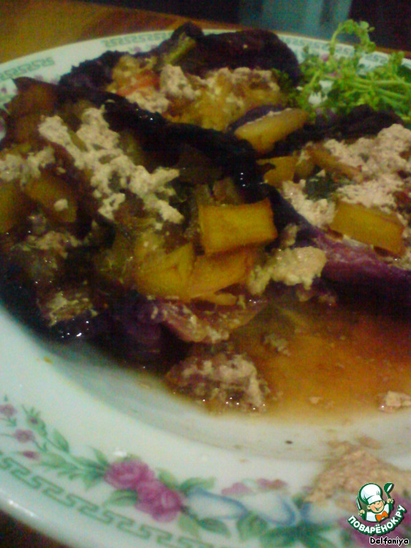 Готовить в духовке около 15 мин. Думаю, что можно и в кастрюле под крышкой, на медленном огне потушить. Выложив на тарелки, полить сметанным соусом с соком красной капусты, очень красивый цвет.