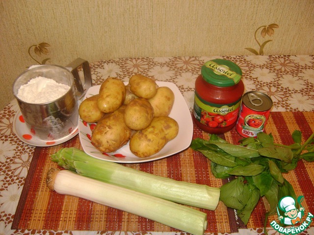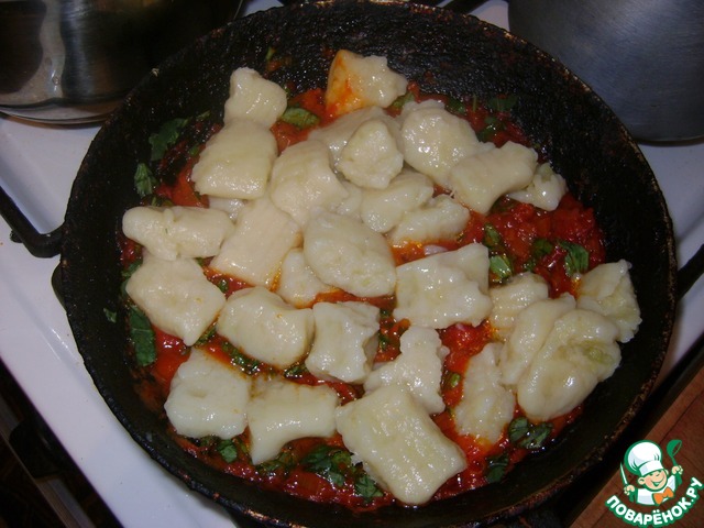 Картофельные клёцки в томатном соусе с луком-пореем и базиликом