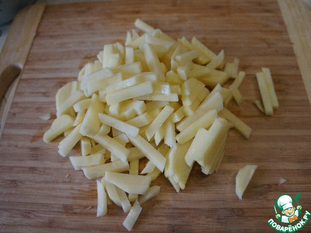 Воду довести до кипения, добавить картофель, снова довести до кипения и варить 5 минут.