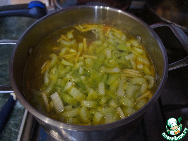 Добавить спассерованные морковь с сельдереем.