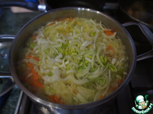 Затем добавить порей,