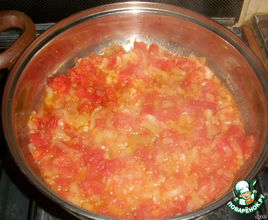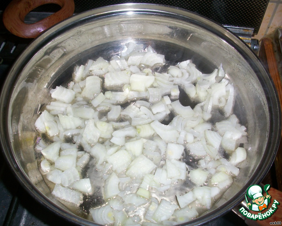 и добавить к луку.Тушить на медленном огне, помешивая.