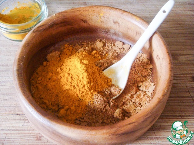 Полученный порошок соединить с куркумой и хорошо перемешать.