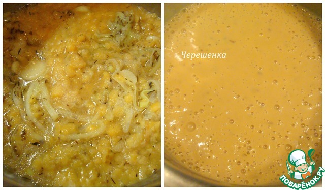 Тушеный порей соединить с отваренной чечевицей и взбить блендером в пюре, при необходимости добавить воды, консистенция должна получиться, как у жидкой сметаны. Посолить, поперчить по вкусу.