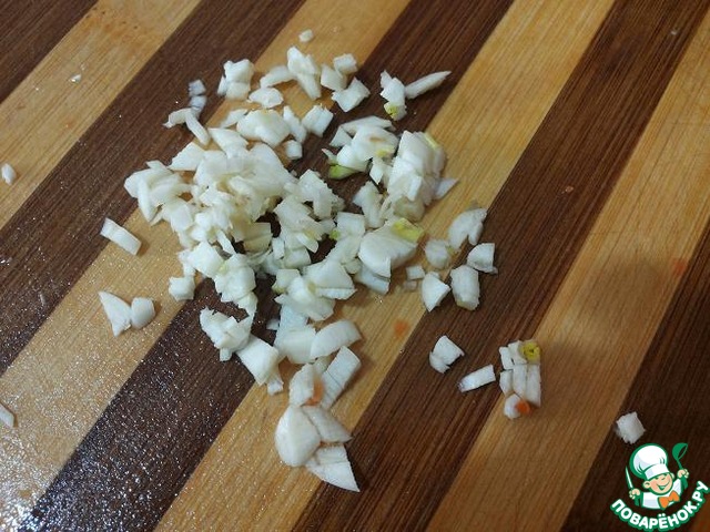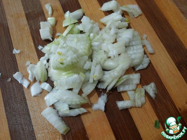 Лук мелко нашинковать.