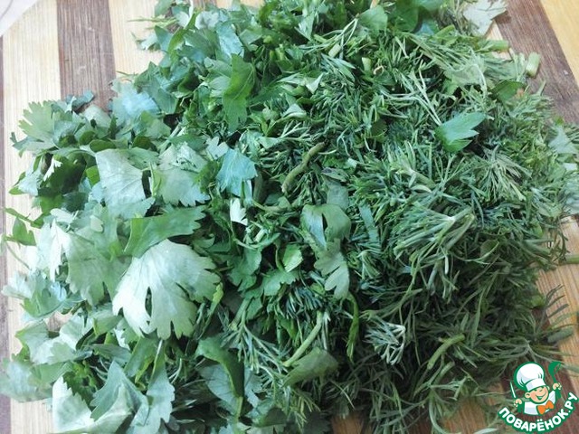 Зелень крупно нарезать.