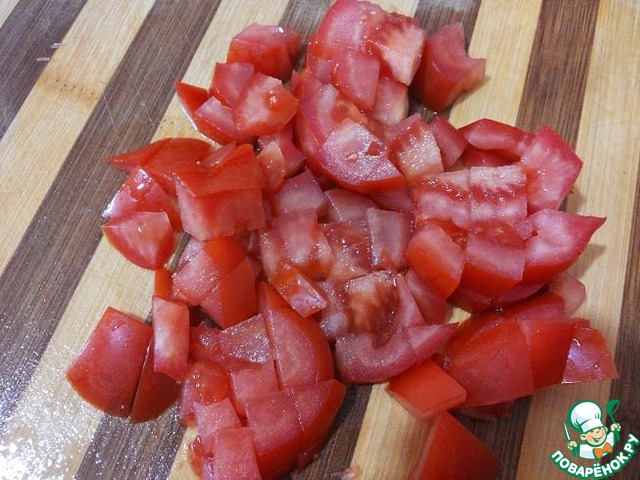 Помидор нарезать кубиками.