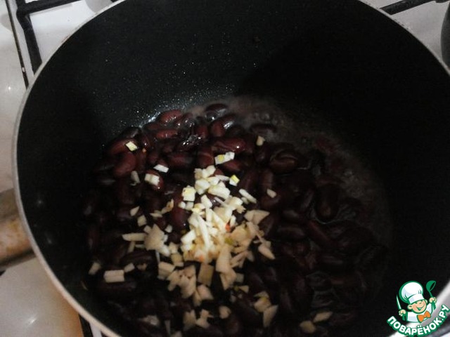 Фасоль и чеснок точно так же быстро обжарить (1 мин.) на масле, выложить в миску.