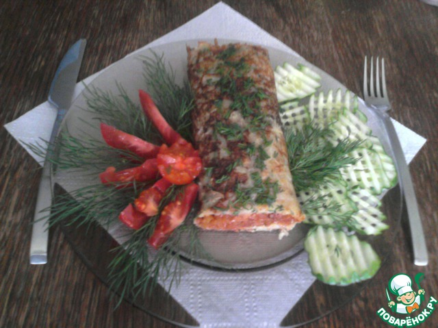 Ну вот и готово. Писала долго. Смотришь кажется долго и сложно. На самом деле все просто и быстро. Начинку сделала. Блинчики пожарила. Свернула. Украсила. Все. Приятного Аппетита