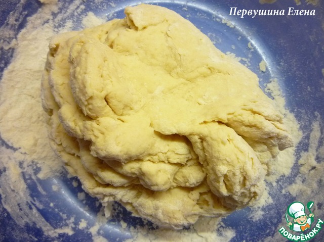 Положить тесто на стол, накрыть пищевой плёнкой и раскатать в пласт,