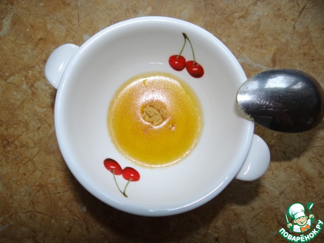 Масло смешать с горчицей;