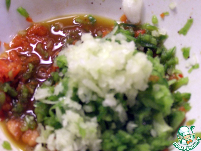 Перцы, лук, чеснок, морковь, картофель все измельчаем.